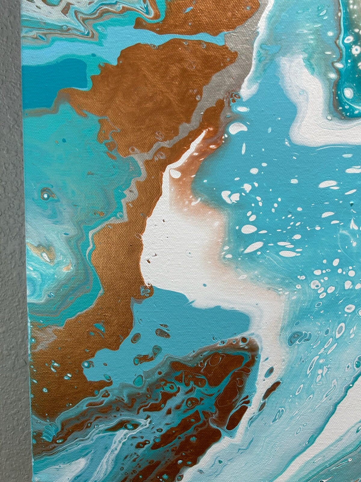 Primary Colors Used: Turquoise green, white, light blue and gold